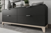 Четыре выдвижных ящика на шариковых направляющих. Ручки - торцевые, металл, 96 мм.  Цоколь комода - деревянное основание, высотой 100 мм.